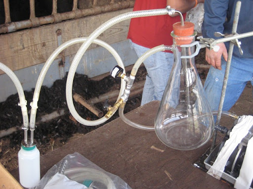 We met Dr. Mark A. Froetschel a Senior professor at Dairy Science school, who needed to take some samples of rumen liquid and manure.